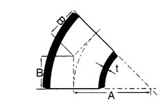 Łuki 45' wg ANSI B 16.9 (B 16.28) - zestawienie wielkości przekroju